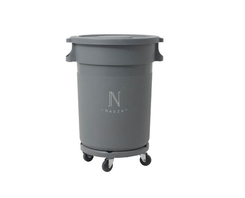 CONTENEDOR CILÍNDRICO DE 120 L MARCA JAMI REF. CO350POG4 CON TAPA Y BASE RODANTE, DE HDPE EN COLOR GRIS. DIMENSIONES: 570X830X570 MM