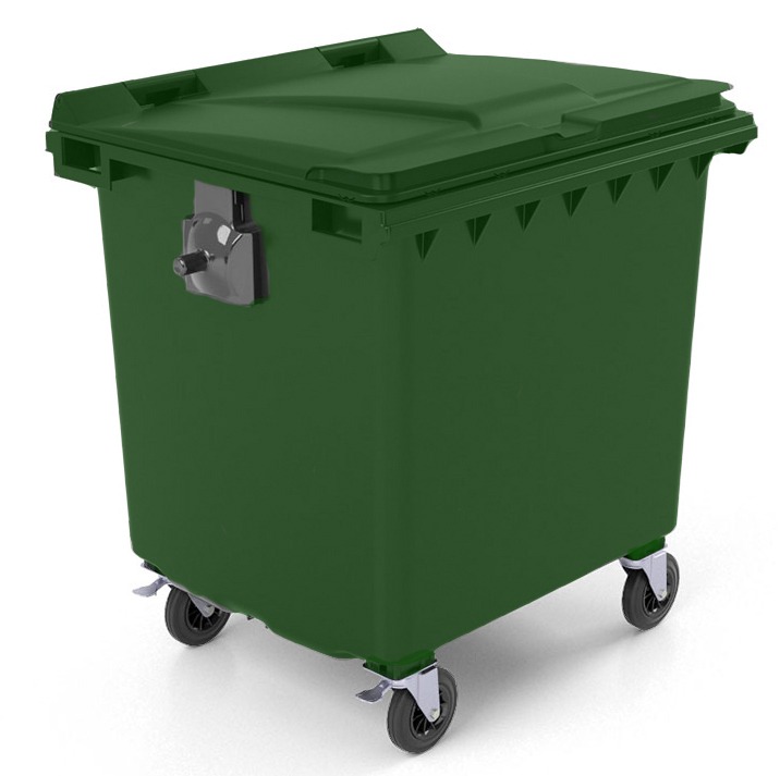 Contenedor sin pedal de polietileno de alta densidad HDPE-EN840 Verde de 1.100l.