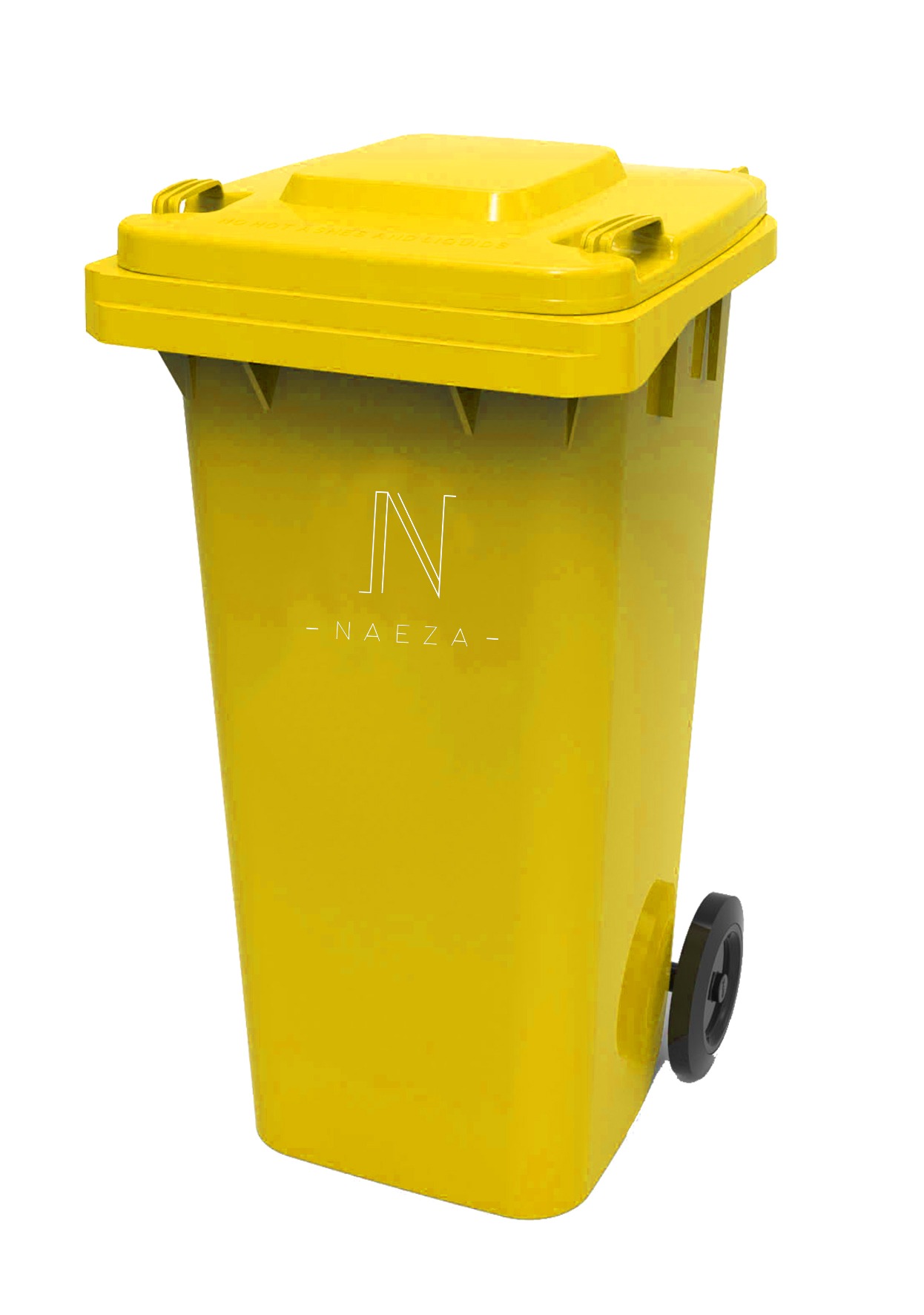 Texto para Prescripción: CUBO CONTENEDOR DE 120 L MARCA JAMI CON DOS RUEDAS TRASERAS, DE HDPE DE COLORES. DIMENSIONES: 465X945X560 MM