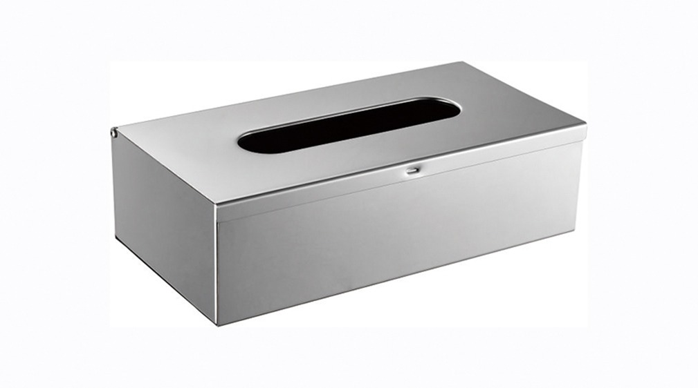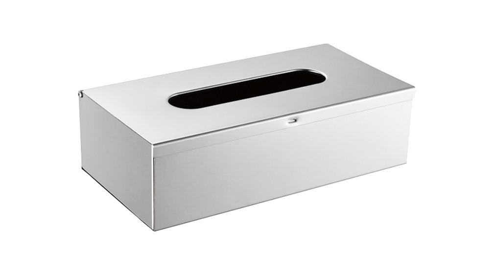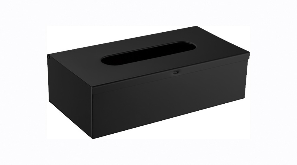 Texto para Prescripción: DISPENSADOR DE PAÑUELOS FACIALES MARCA JAMI, DE ACERO INOXIDABLE AISI 304 EN ACABADO SATINADO, BRILLO. ONEGRO. DIMENSIONES: 265X53X141 MM
