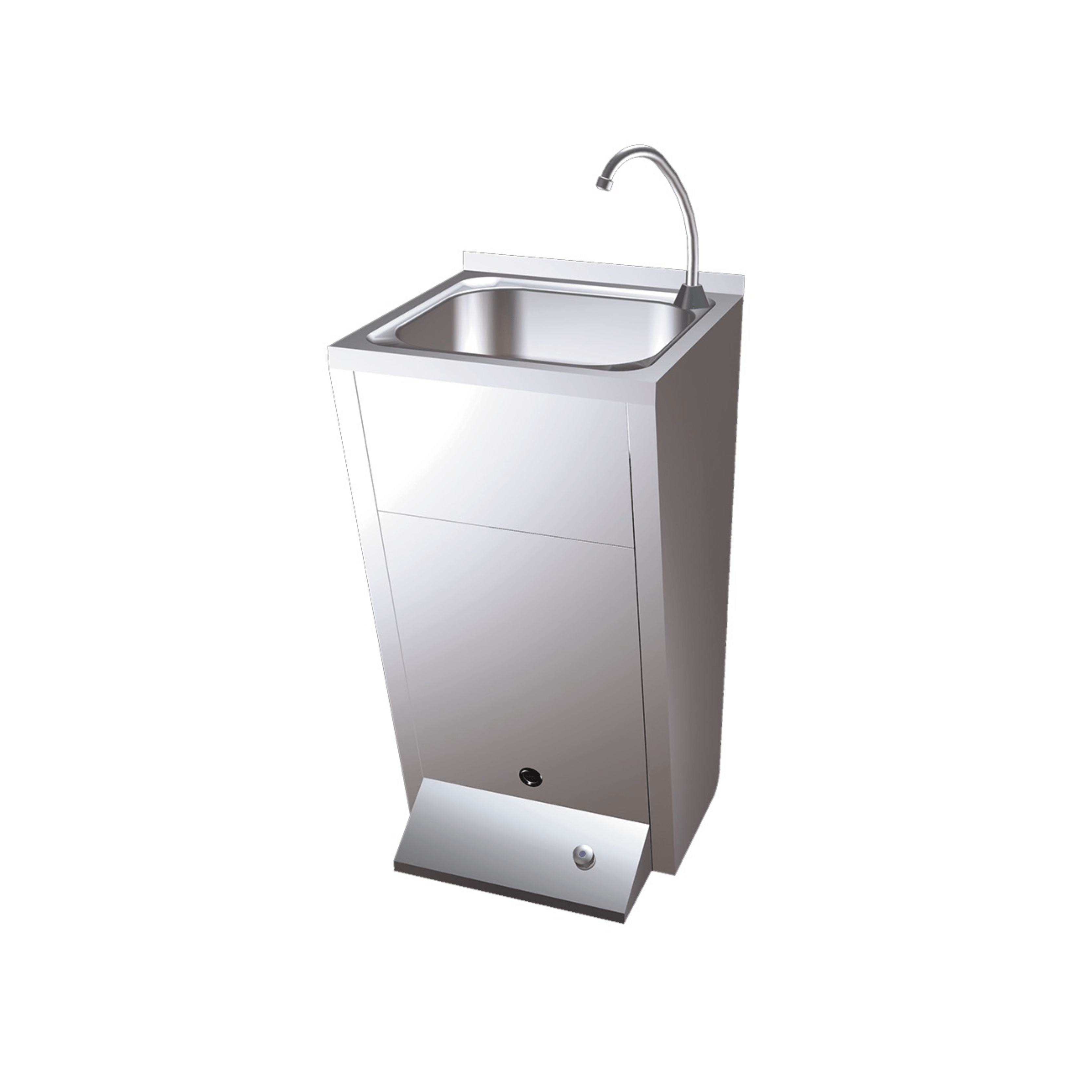 Lavamanos de pie con pulsador en acero inox. Aisi 304 Satinado. Agua fría y caliente.