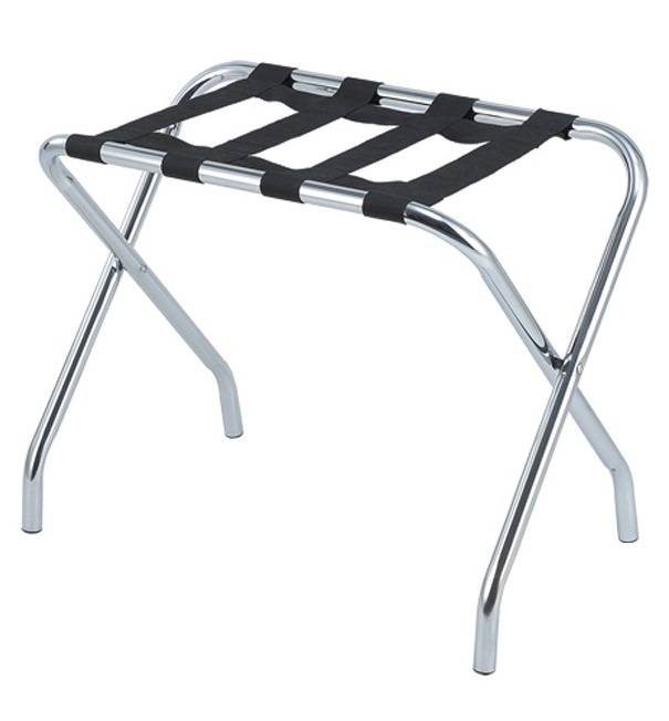 Soporte para maletas con cuatro cintas de nylon Negro y estructura en acero Cromado.