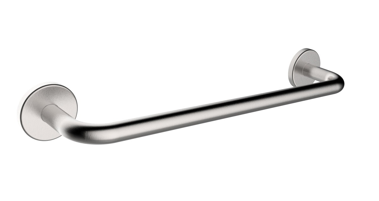 Texto para Prescripción: TOALLERO CURVO MARCA JAMI REF. AB162AIS1 DE 300 MM DE LONGITUD, DE ACERO INOXIDABLE AISI 304 EN ACABADO SATINADO. DIMENSIONES: 336X46X67 MM Y Ø14 MM TUBO.